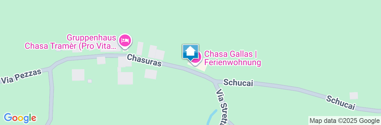 Diese, liebevoll mit antiken Möbeln ausgestattete Wohnung, befindet sich im 2. Stock, der 2011 renovierten Chasa Gallas im ruhigen Dorfteil von Chasuras. Sie bietet ein grosses Doppelzimmer mit einem aufmerksam restaurierten Bett aus dem Jahre 1734. Das zweite Zimmer ist mit zwei Einzelbetten ausgestattet, die nach Bedarf zu einem Doppelbett zusammengefügt werden können. Die grosse Wohnküche mit Esstisch und Eckbank wurde dem Stand der Technik entsprechend renoviert und ausgerüstet (Geschirrspühlmaschine, Backofen und Keramikherd, Nespressomaschine, Mixer, usw.). Im Wohnraum, der direkten Zugang zum kleinen Südbalkon hat, befinden sich ein grosses Sofa, ein Fernseher (Swisscom TV) und ein DVD Player. Die Wohnung hat WiFi Verbindung. Am Fuss des Wanderwegs nach Lü (im Winter Schlittelbahn), befindet sich die Wohnung an idealer Lage als Startpunkt für Wanderungen im Tal, Nationalpark, sowie ins Unterengadin. Für Sportsfreunde bietet das Dorf ebenfalls ein Schwimmbad im Sommer und eine Eisbahn und Langlaufloipen im Winter. Das kleine aber feine Skigebiet Minschuns ist per Bus oder Auto in wenigen Minuten erreichbar. Im kleinen Dorfladen finden Sie alles für den täglichen Gebrauch. Weitere Läden befinden sich talauswärts in St. Maria und Müstair.