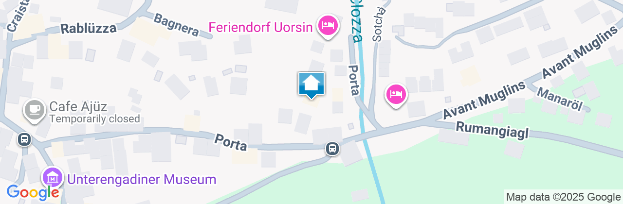 Unsere Ferienwohnung befindet sich im Parterre unseres Zweifamilienhauses. Es handelt sich um eine 2 1/2-Zimmerwohnung mit einer Wohnfläche von 50 m. Die Wohnung besteht aus einem grossen Wohnzimmer, einem Doppelschlafzimmer, einer Küche und einer Dusche/WC mit Waschmaschine. Das Wohnzimmer ist mit einem komfortablen Bettsofa für zwei Personen, einer Sitz- oder Essecke sowie mit Satelliten-fernseher, kostenloser Internetzugang und Radio ausgestattet. Vor dem Haus steht ein eigens für die Wohnung erstellter Gartensitzplatz mit Liegewiese. Unser Haus ist an zentraler, jedoch ruhiger Lage gelegen. 2 Gehminunten entfernt befindet sich eine Bushaltestelle. In 5 Gehminuten erreichen Sie das Gesundheits- und Erlebnisbad Engadin Bad Scuol.