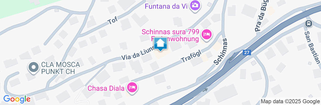 Die Wohung befindet sich im oberen Teil von Scuol. Zu den Geschäften sind es 10 Minuten zu Fuss. Die Talstation der Skiregion Motta-Naluns (neben dem Bahnhof) ist ebenfalls in 10 Minuten zu Fuss erreichbar. Im Haus befindet sich ein Ski-/Veloraum zur Benützung, ein Platz in der Parkgarage sowie ein Lift.